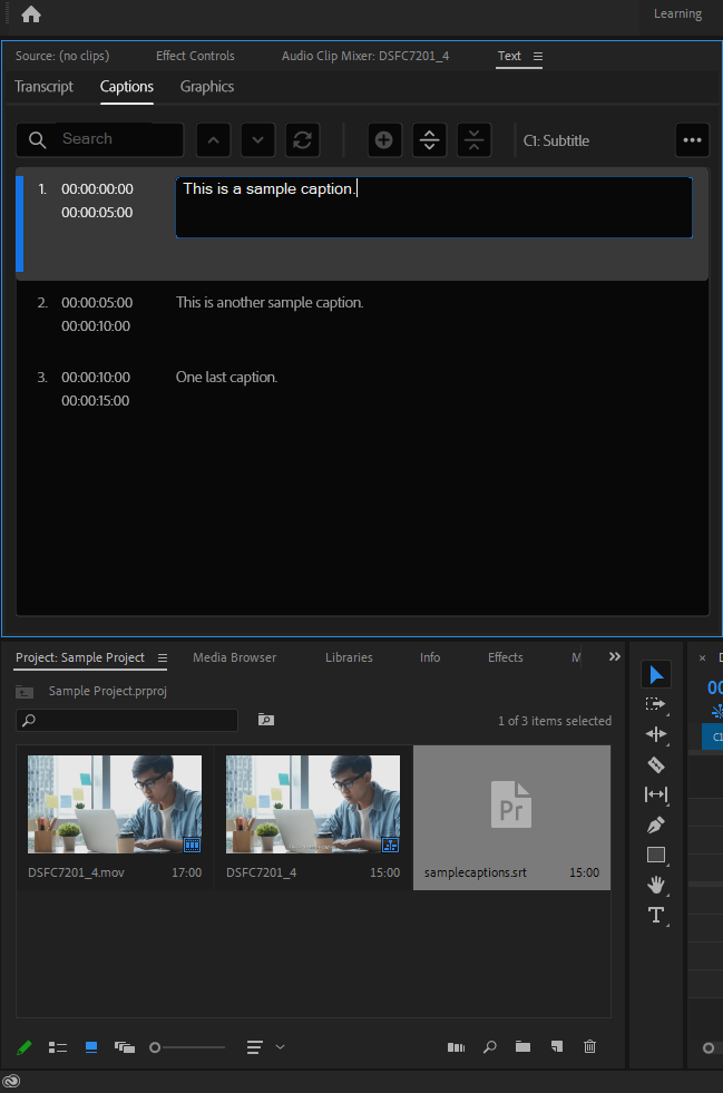 There are three easy methods for captioning your videos in Adobe Premiere Pro. Here’s a step-by-step guide for each method: