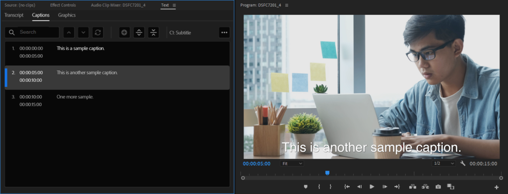 Premiere Pro allows you to import subtitle files into your projects. After importing the subtitle file, closed captions from the file will appear on your project with the specified start and end points.