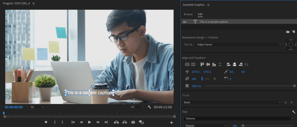 Premiere Pro has a dedicated captioning feature that makes it easy to add captions to your videos, with an intuitive interface that allows you to set: